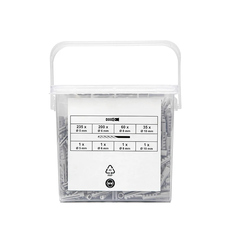 BSCI-fabrik leverer kvadratisk emballage 520 stk tømmerplade plast vægstopper nylon anker sortiment