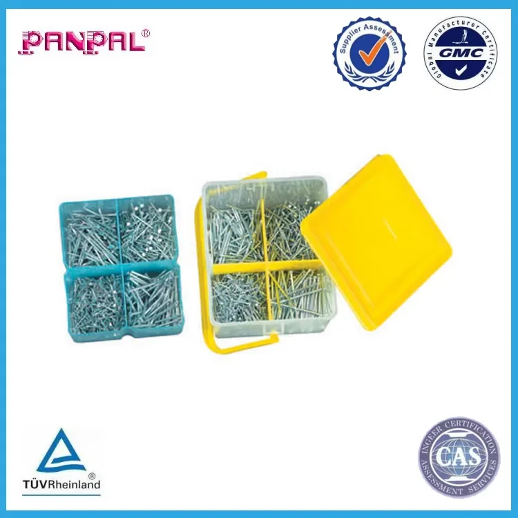 | Specifikation | 1700 stk. naglesortiment Trådnagler: 3/4"--400 stk. 1"--300 stk. 1-1/2"--100 stk. 2"--50 stk. Trådspigler: 3/4"--400 stk. 1"--300 stk. 1-1/2"--100 stk. 2"--50 stk. |