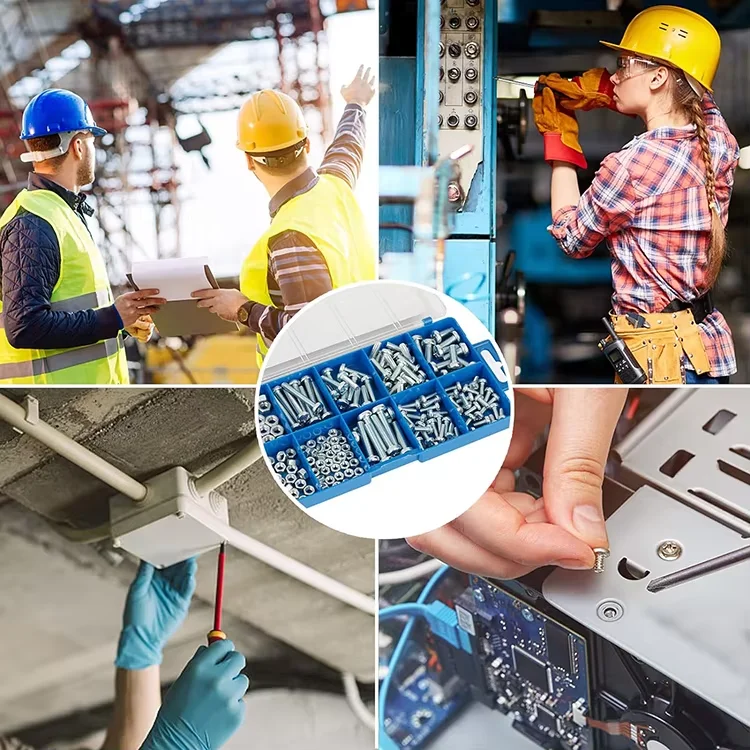 | 192 vnt. Mašinos sraigtų ir veržlių rinkinys M4x10 mm-20 vnt., M4x12 mm-20 vnt., M5x15 mm-20 vnt., M5x20 mm-10 vnt., M5x35 mm-8 vnt., M6x15 mm-10 vnt., M6x30 mm-8 vnt. ir veržlės: M4-40 vnt., M5-38 vnt., M6-18 vnt. |