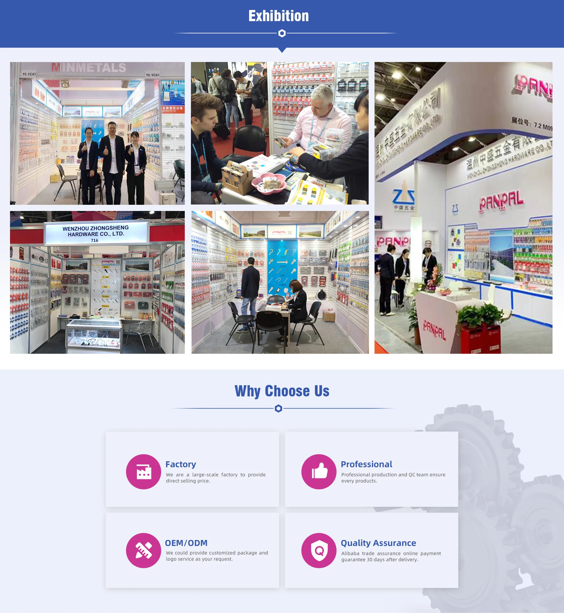 Наш завод засновано у 1993 році, 23 роки досвіду у сфері товарів для діїту. Ми розташовані у Веньчжоу, де транспортне сполучення зручне, 10 хвилин до аеропорту Веньчжоу, 40 хвилин до південного вокзалу Веньчжоу, 2 години до порту Нінбо. Загалом у нас працює 120 співробітників. Основні ринки — Європа, Америка, Австралія... Клієнти, такі як Kingfisher, OBI тощо. Продажі в торгових мережах будівельних матеріалів, торгових центрах, магазинах, онлайн тощо., багато каналів збуту.